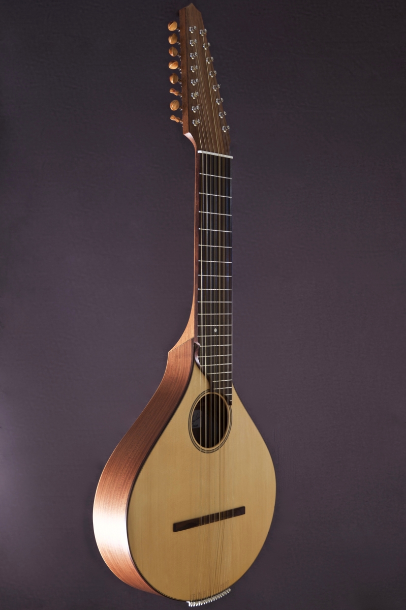 Elle se caractérise par une sonorité vive et colorée .Sa conception permet l’utilisation de cordes acier et filées bronze ou nickel que l’on peut se procurer facilement en magasin de musique. La facilité d’accord et la justesse sont assurées par des mécaniques.